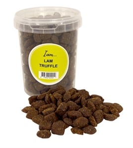 Der I Am Lamb Truffle 300 gr ist ein halbfeuchter Hundesnack mit Lamm und Lachs aus 88% tierischen Zutaten, mit frischem Lamm und glutenfrei.