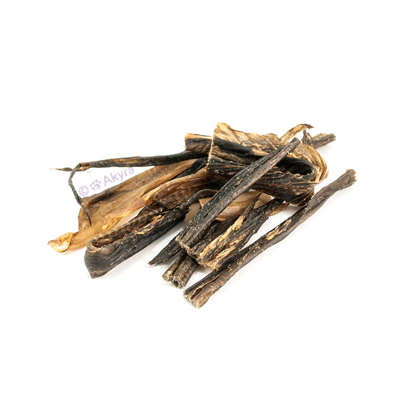 Schmale Stücke Welshaut ca. 10-20cm lang. Super gesund, auch für übergewichtige Hunde geeignet. Auch für kleine Hunde geeignet, da die Stücke nicht so groß sind.
