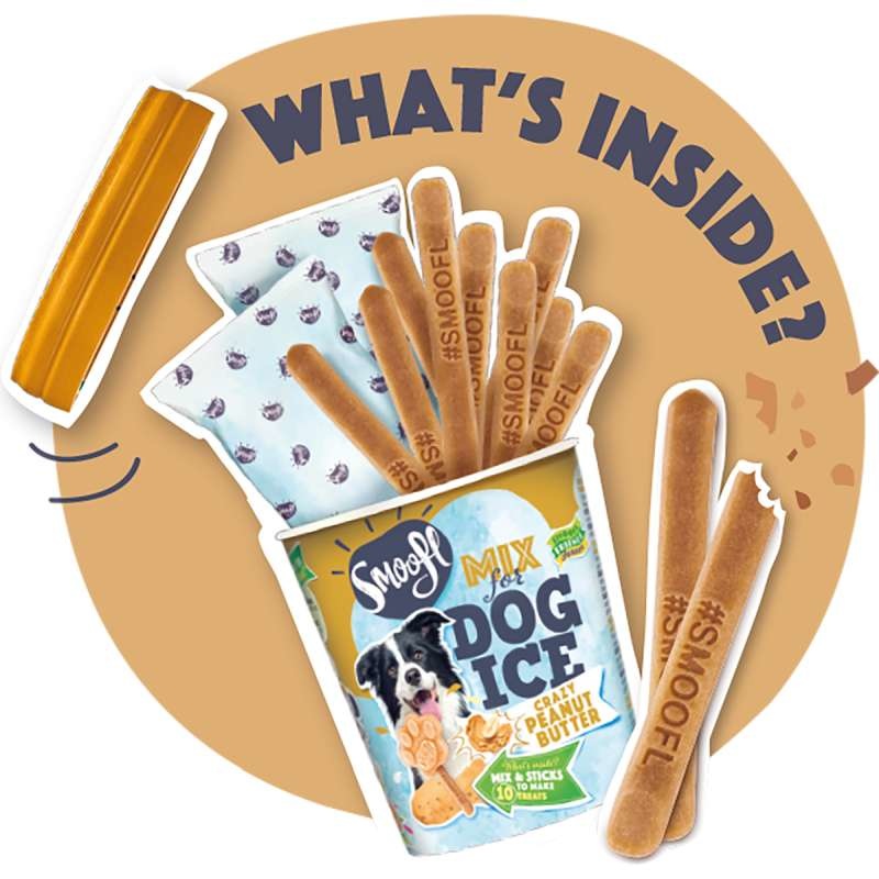Verwöhnen Sie Ihren Vierbeiner mit unserem Smoofl Mix für Hundeeis in der Geschmacksrichtung Erdnussbutter.