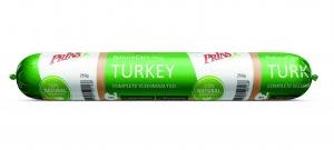 NatureCare Turkey is a complete grain-free meat food and particularly suitable as a healthy variation on dry food. The carefully selected ingredients contribute to a healthy skin and shiny coat and support a balanced intestinal flora. This food contains turkey as the only animal protein source, which reduces the chance of a hypersensitivity reaction. This food is also suitable as a responsible reward during training.