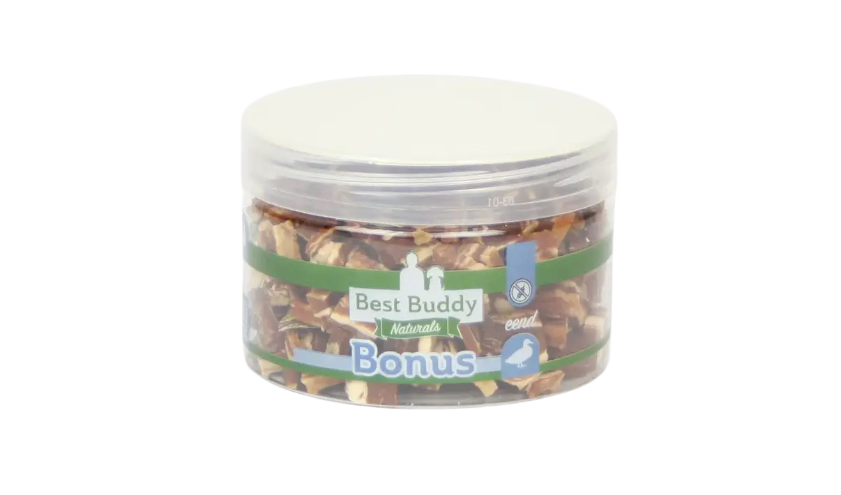 De Bonus Eend snacks zijn perfect om direct te gebruiken tijdens de training. Wil je de stukjes kleiner maken, dan kan dat eenvoudig door ze te breken, zonder dat er gruis ontstaat. Met deze heerlijke eendensnoepjes heb je meteen de volledige aandacht van je hond.