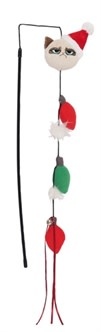 De Grumpy Cat Kattenhengel Kerstlampjes is kattenspeelgoed in kerstsfeer, in de vorm van een hengel met kerstfiguurtjes.