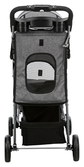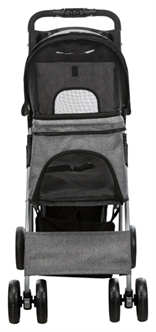 De Trixie Hondenbuggy Grijs 47X80X100 cm is een inklapbare hondenbuggy met vier wielen, eenhandsbediening en parkeerremmen.