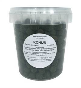 De I Am Konijn Knikkers 500 gr aanvullende hondensnack zijn handige beloningssnoepjes voor jouw hond met konijn.