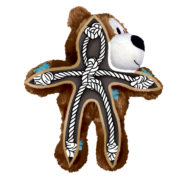 KONG Wild Knots zijn zacht en knuffelachtig aan de buitenkant, en duurzaam en sterk aan de binnenkant. Wild Knots beren zijn een gegarandeerd succes onder honden en hun eigenaars. Honden zijn dol op het gevlochten skelet en het verstevigde pluchen lichaam zorgt voor extra duurzaamheid. KONG Wild Knots hebben minder vulling, dus minder rommel, en ze piepen om het spel aan te moedigen.