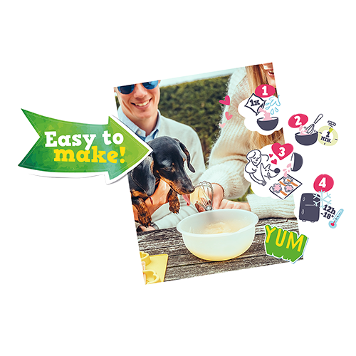 Je maakt er 5 hondenijsjes en 4 ijsbonbons mee. Als je hondenijsje klaar is, duw je het eenvoudigweg uit de vorm. Ready, set, Smoofl time!