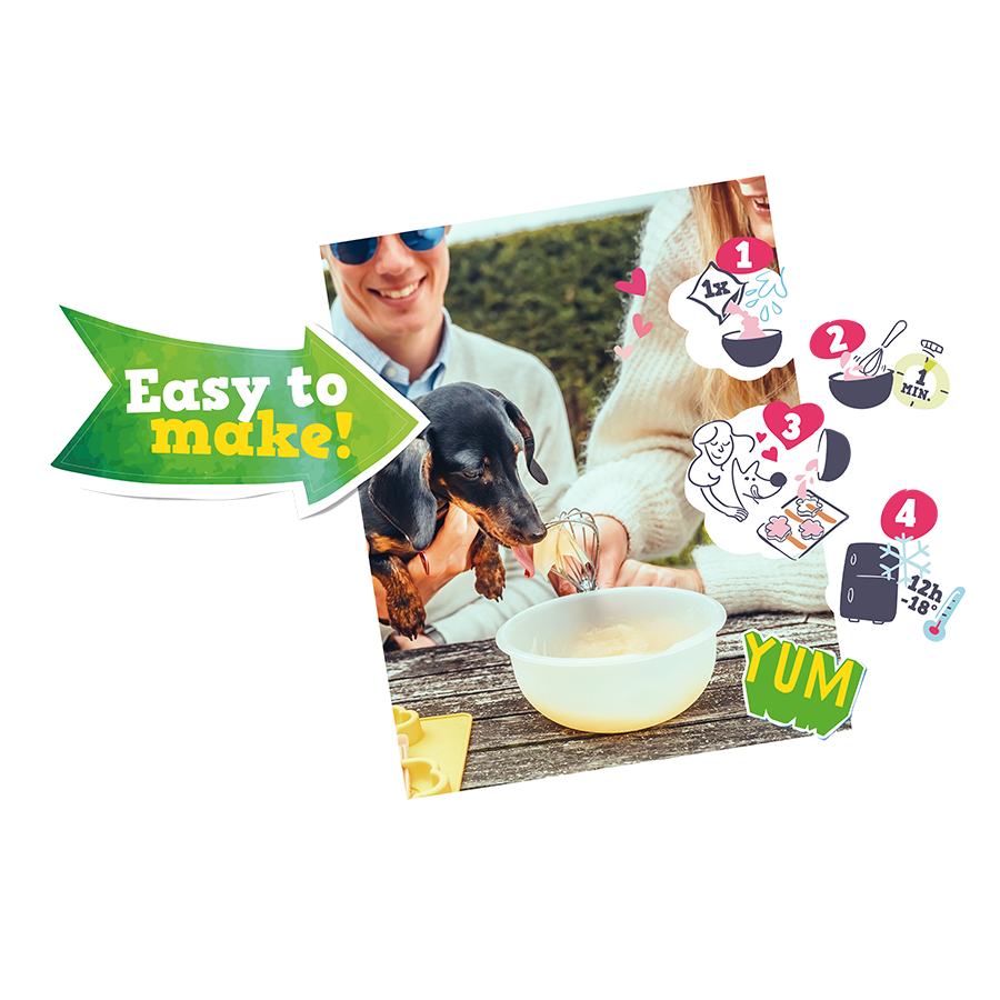 In het potje mix zitten 10 eetbare stokjes waarvan je viervoeter kan genieten. De Smoofl hondenijsjes zijn zeer eenvoudig te maken en klaar in slechts 60 seconden.