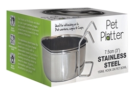 De Hook On voer-/drinkbak is uitermate geschikt voor in een draadkooi of reiskennel met tralies. De voerbak wordt vastgeklemd tussen de tralies, hiermee blijft de bak op 1 plek en heeft uw hond altijd voeding en/of water tot zijn beschikking wanneer hij voor eventjes opgesloten moet worden.